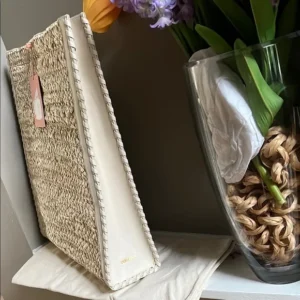 Natural Raffia Construction: Hand-woven from high-quality natural woven raffia providing a beautiful organic texture that is both durable and lightweight.
