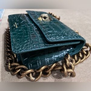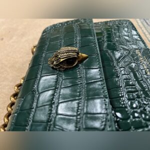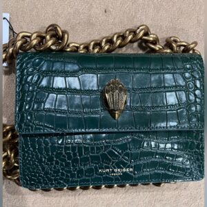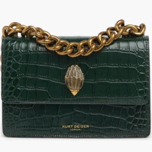 The Kurt Geiger Crossbody is a masterclass in statement-making design. Crafted from premium croc-embossed leather, this bag offers a durable, structured silhouette that maintains its shape over time. The front flap is crowned with the signature antiqued brass head for a touch of unmistakable luxury.