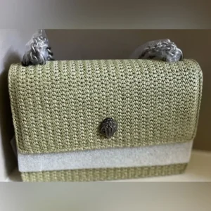 Make a bold statement with the Kurt Geiger London Shoreditch Eagle Small Shoulder Bag. Featuring the brand’s signature antiqued brass eagle head with shimmering crystal eyes, this structured silhouette is crafted from premium woven for a sophisticated finish. With a convertible chain strap and a compact design that fits all your essentials, it’s the ultimate accessory for day-to-night glamour.