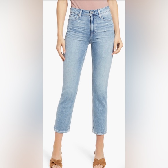 Effortlessly cool and expertly tailored, the PAIGE Cindy Raw Hem Crop Straight Leg Jeans are your new everyday essential. Featuring a flattering high-rise waist and a modern straight-leg silhouette, these jeans are finished with an authentic raw hem for a touch of lived-in edge. Designed with PAIGE’s signature stretch denim, they offer a perfect fit that holds its shape from morning to night.