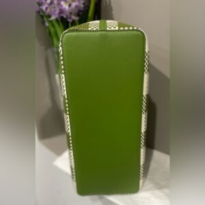 Signature Leather Accents: Features genuine leather top handles and a protective leather base ensuring the bag maintains its structured silhouette even when fully loaded.