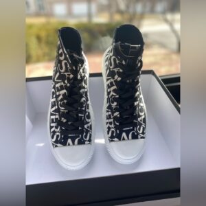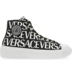 Step into the new era of Versace with the La Greca Logo Print High Top Sneakers. Featuring the brand’s signature geometric monogram print, these sneakers blend archival heritage with modern streetwear vibes. Crafted in Italy from premium canvas and accented with a Medusa-branded sole, these high tops are the ultimate statement piece for the luxury fashion collector.