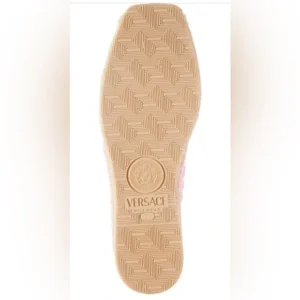 The Versace Logo Print Espadrilles are designed for those who want to maintain a polished look while enjoying a relaxed seaside aesthetic. Featuring the iconic House typography these shoes serve as a bold statement piece for your vacation wardrobe. Whether you’re strolling through a coastal village or lounging at a resort these espadrilles provide the comfort of a flat with the prestige of Italian luxury.